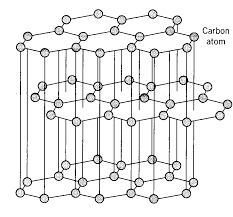 Each carbon atom, contains one non-bonded, delocalized electron. Conducts electricity due to the mobility of these electrons. Uses as a lubricant and in pencils.