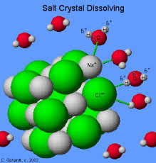 Consider an ionic compound being placed in water. At the contact surface, partial charges in the water molecules are attracted to ions of opposite charge in the lattice which may cause them to dislodge from their position. Ions separated from the lattice, which may cause them to dislodge from their positions. This is called hydrated.